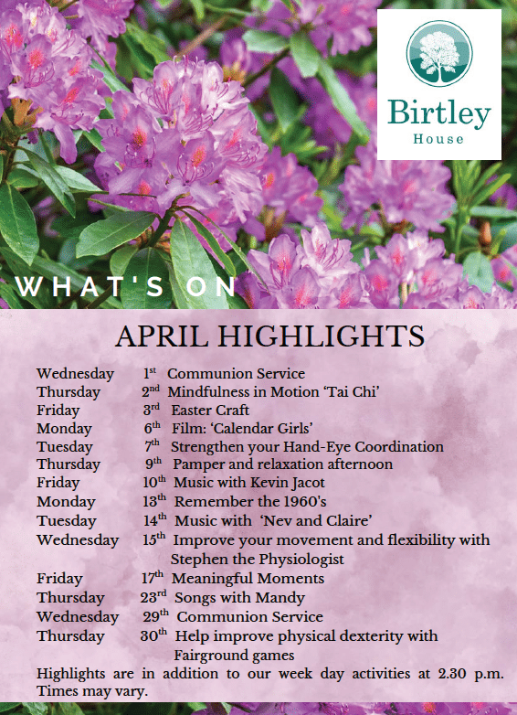 Keep up to date with daily activities and news from Birtley House Nursing Home, the Birtley Estate, the Woodland activities, our events and charity projects…