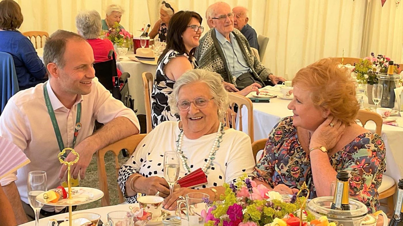 "The residents were treated with a fancy strawberry tea spread of cakes, scones and other delicacies amid blooming flowers in the rose garden."